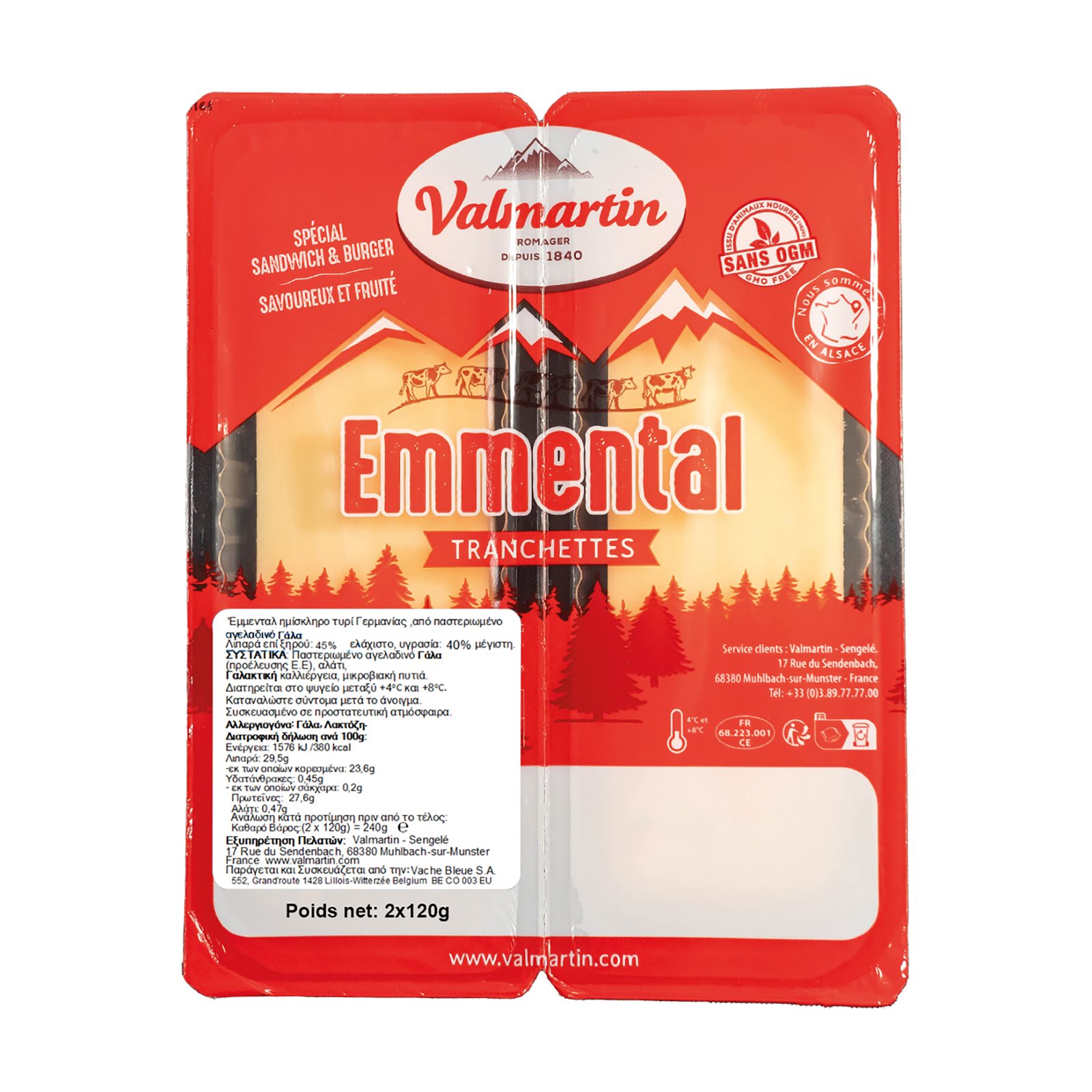 Έμενταλ ημίσκληρο τυρί Γερμανίας σε φέτες, από παστεριωμένο αγελαδινό γάλα.