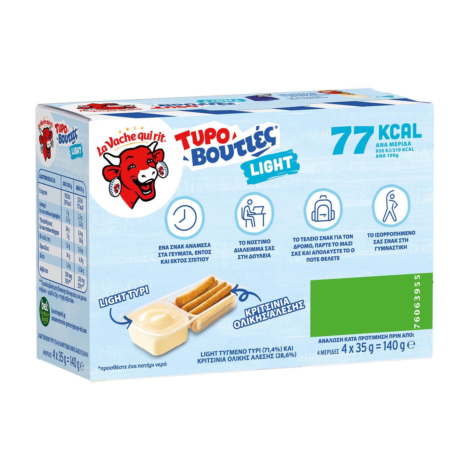 Τυρί Κρέμα LA VACHE QUI RIT Τυροβουτιές Light με Κριτσινάκια 140g
