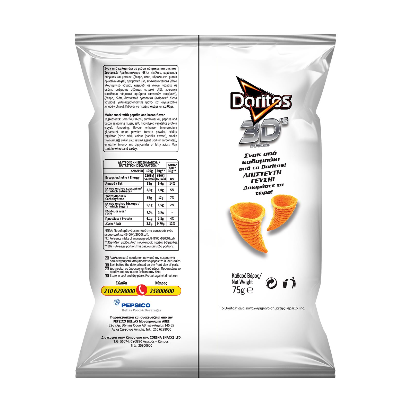 DORITOS 3D's Bugles Σνακ με γεύση Πάπρικα 75g