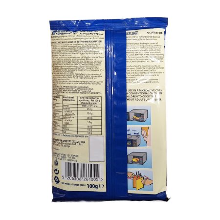 1. Αφαιρέστε το σελοφάν και τοποθετήστε τη σακούλα στο κέντρο του φούρνου μικροκυμάτων όπως δείχνουν οι οδηγίες στη χάρτινη σακούλα.